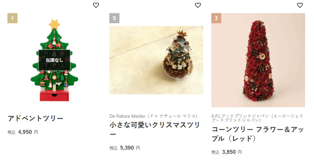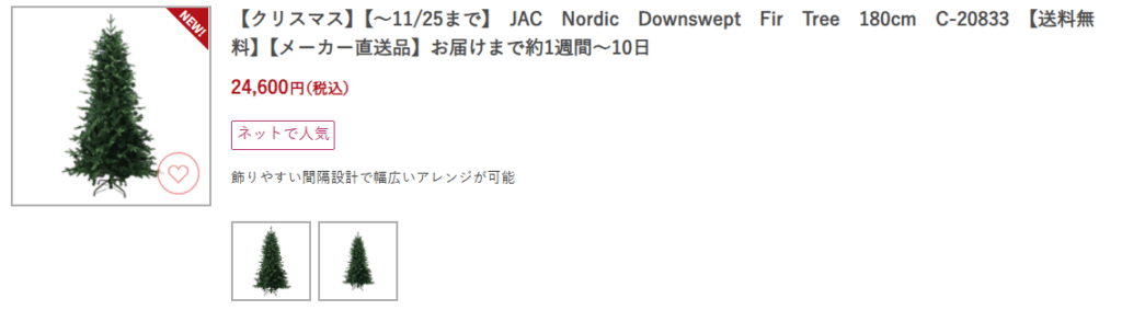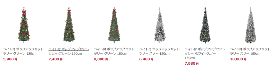 さらに高島屋を調べたところ、クリスマスツリーが売っていることがわかりました。